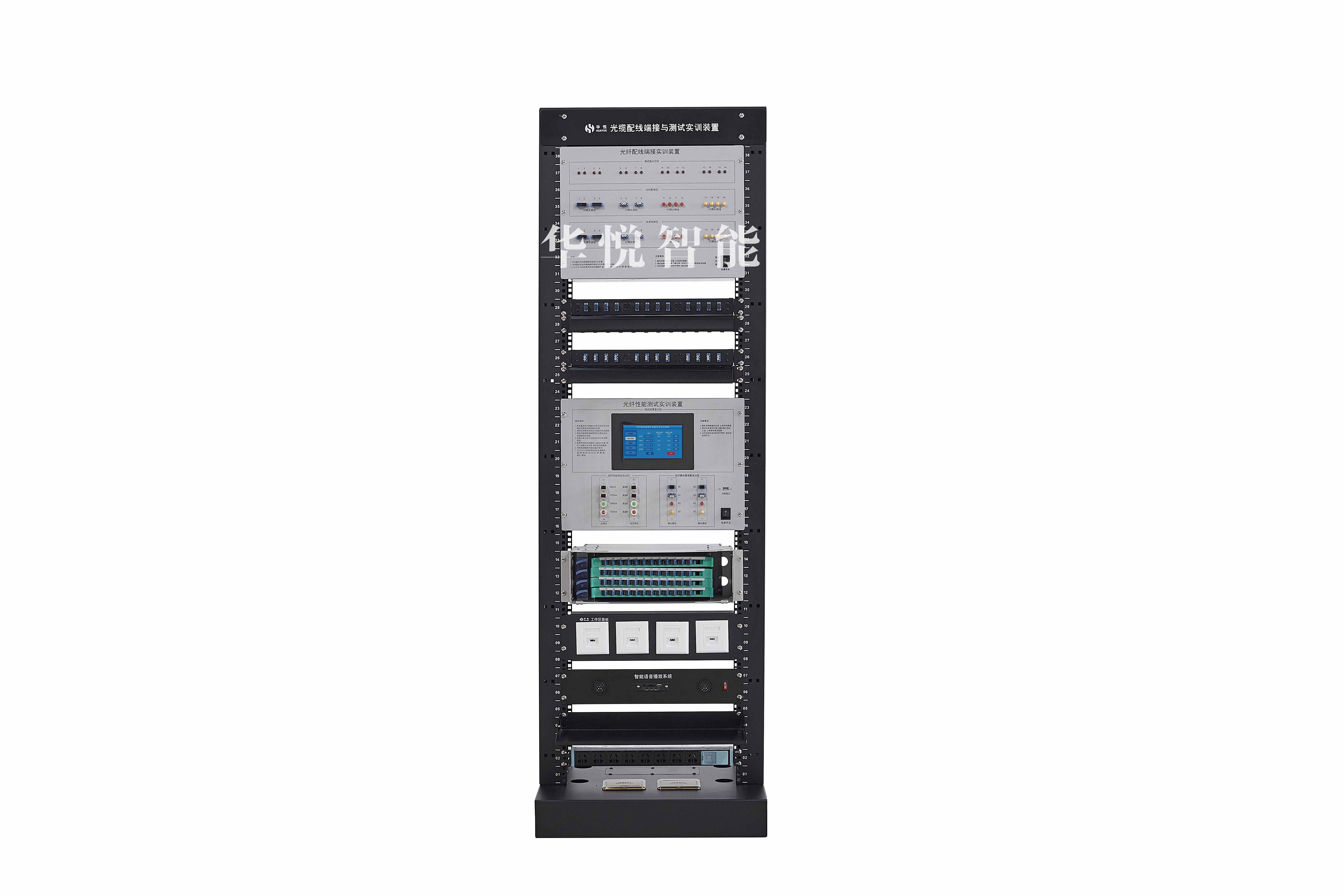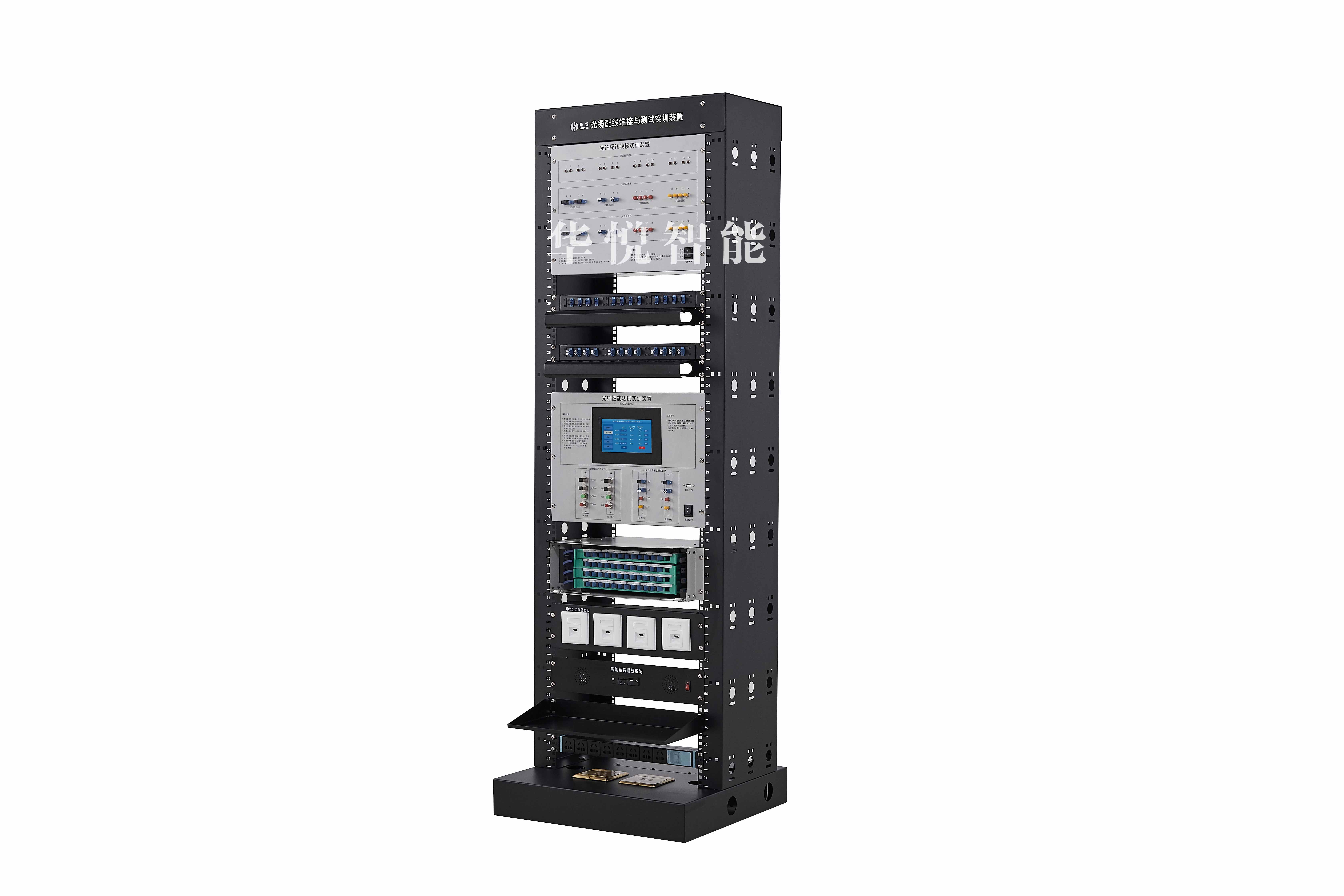 4、裝置側(cè)板預(yù)留各種孔徑安裝孔,可以進行網(wǎng)絡(luò)設(shè)備、監(jiān)控設(shè)備、面板底盒配件的安裝與調(diào)試。