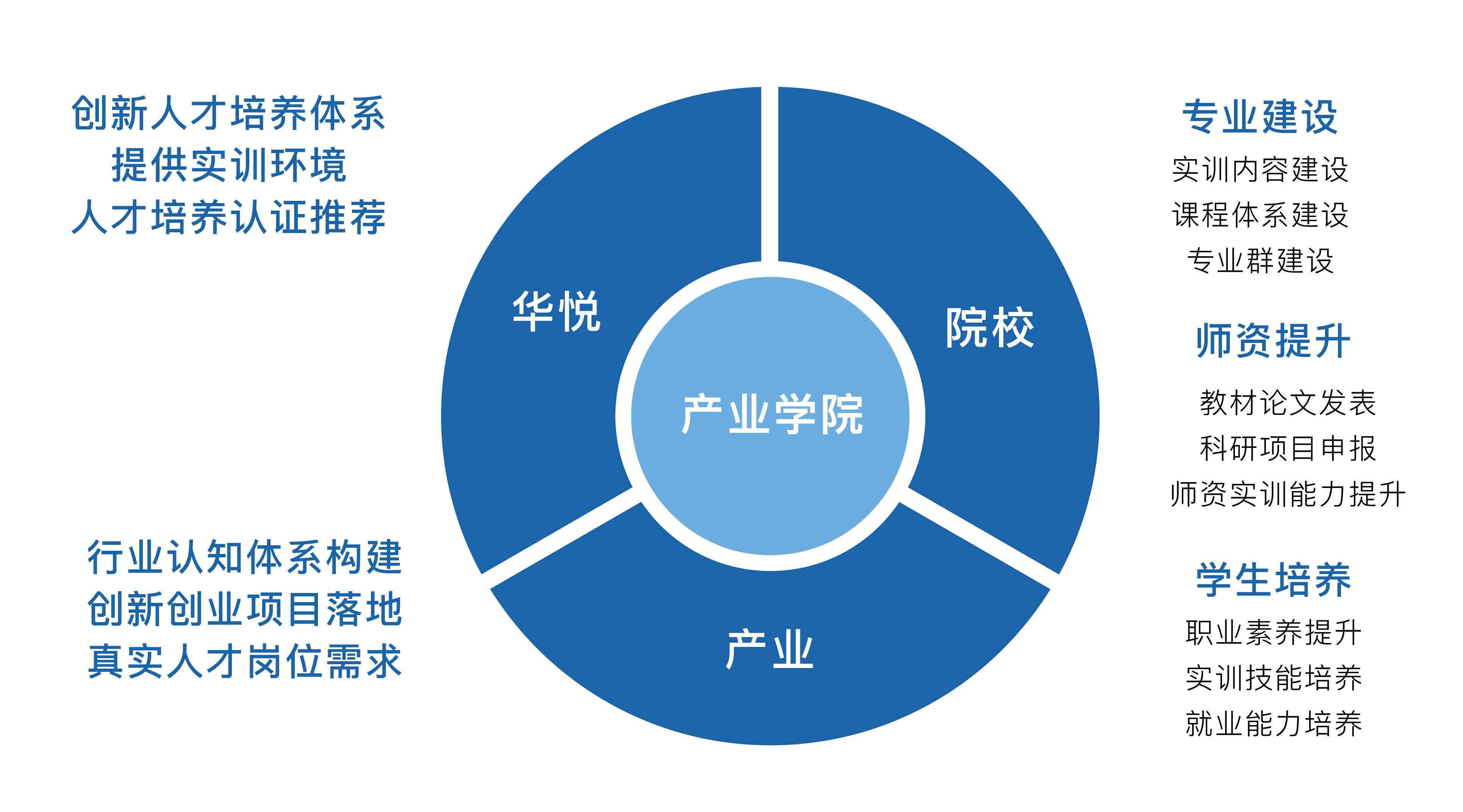 華悅教育結(jié)合國家政策和產(chǎn)業(yè)資源,協(xié)助職業(yè)院校共同建設(shè)新興專業(yè)和專業(yè)群,多方位、全流程的培養(yǎng)學生,充分發(fā)揮產(chǎn)業(yè)優(yōu)勢,發(fā)揮企業(yè)重要教育主體作用,深化產(chǎn)教融合,建強優(yōu)勢特色專業(yè),完善人才培養(yǎng)協(xié)同機制,進行校企共建共管共享的信息產(chǎn)業(yè)學院項目,企業(yè)將核心專業(yè)課程、實操技能、就業(yè)平臺、實訓基地等資源引入院校,優(yōu)化課程體系、提高師資水平、強化教學服務質(zhì)量,提升校方的整體實訓教學水平,培養(yǎng)大批量信息工程類高素質(zhì)技能人才。